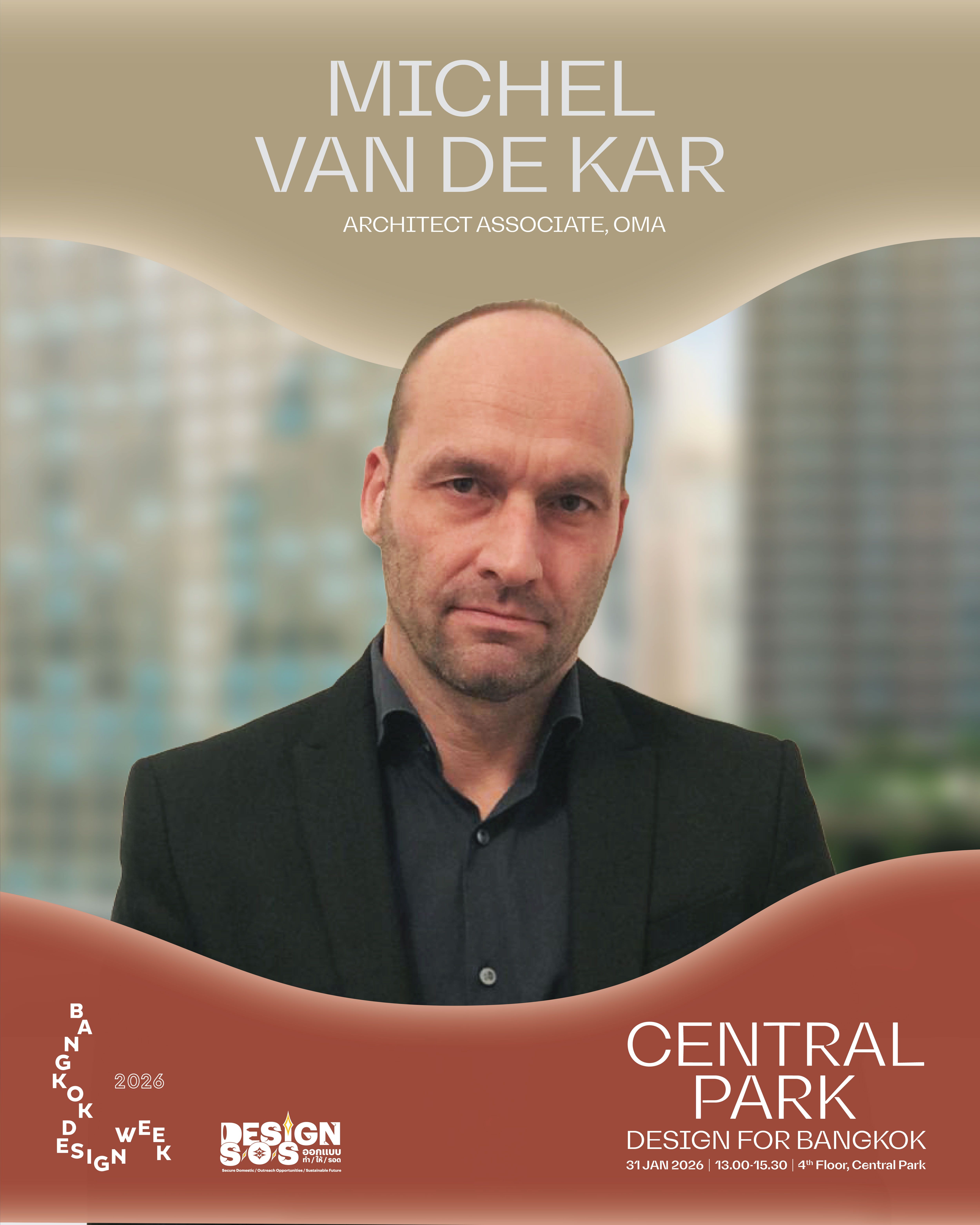 Michel van de Kar คือสถาปนิกและผู้ร่วมงานระดับ Associate ของ OMA (Office for Metropolitan Architecture) สตูดิโอสถาปัตยกรรมระดับโลกจากเนเธอร์แลนด์ ผู้มีบทบาทสำคัญในโปรเจกต์ขนาดใหญ่ทั่วโลก และยังทำงานเกี่ยวข้องกับประเทศไทยอย่างใกล้ชิด เขาเข้าร่วม OMA ที่สาขาร็อตเตอร์ดัมตั้งแต่ปี 2003 ซึ่งเป็นช่วงเวลาเดียวกับที่สำนักงานคว้าชัยจากการประกวดออกแบบอาคาร CCTV ที่กรุงปักกิ่ง ถือเป็นหมุดหมายสำคัญที่ผลัก OMA ขึ้นสู่เวทีโลก และทำให้ Michel เติบโตมากับโจทย์เมืองและโปรเจกต์ขนาดใหญ่ตั้งแต่ช่วงต้นของเส้นทางอาชีพ